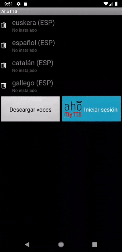 - Instala a aplicación “AhoTTS” desde Google Play no teu dispositivo Android.